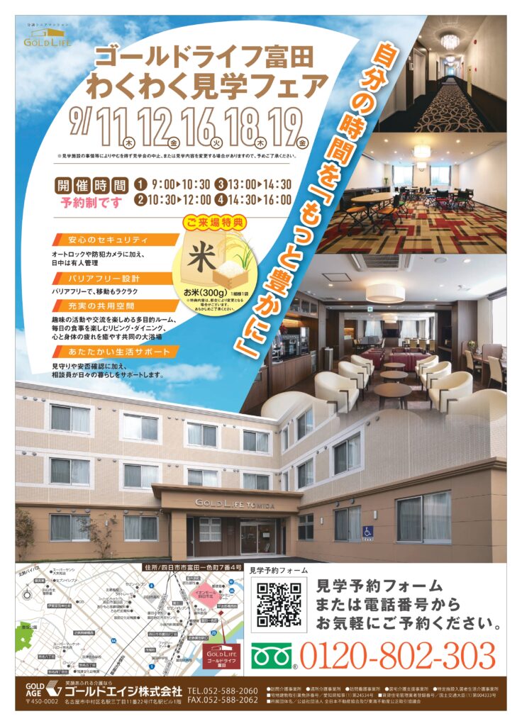 ゴールドライフ富田では、9月度の見学会を実施いたします。