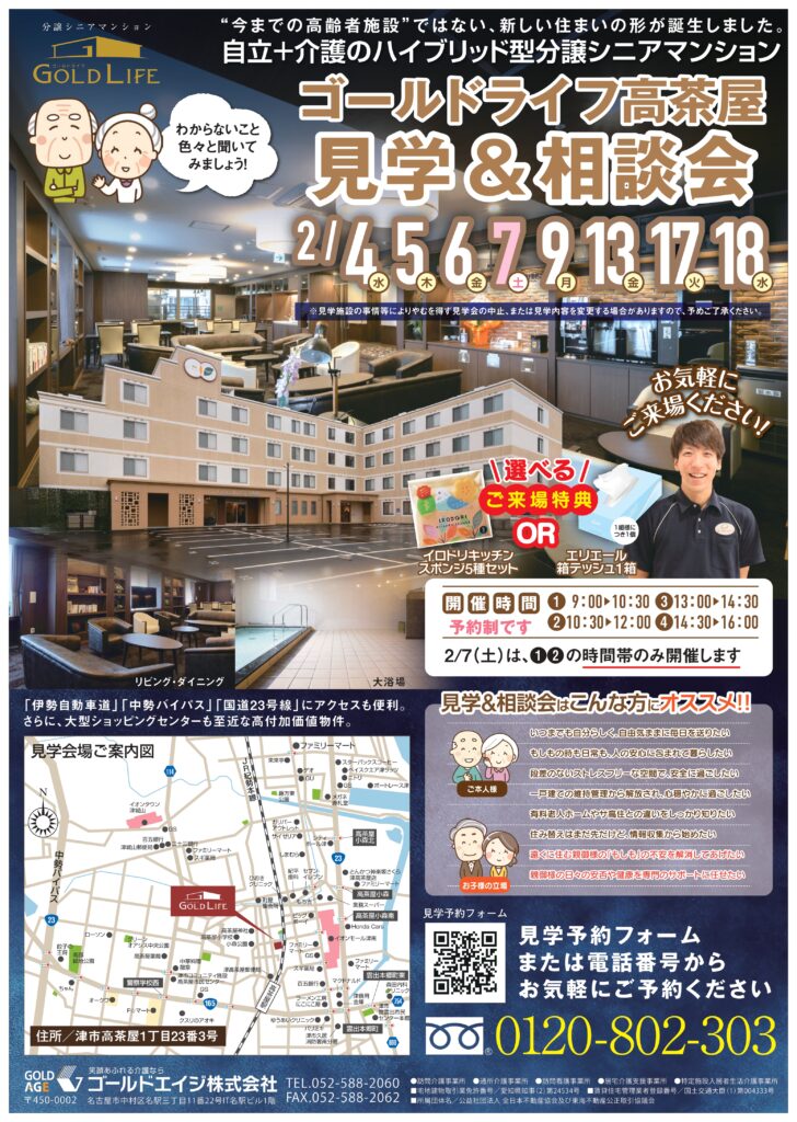 ゴールドライフ高茶屋では、2026年2月度の見学&相談会を開催いたします。