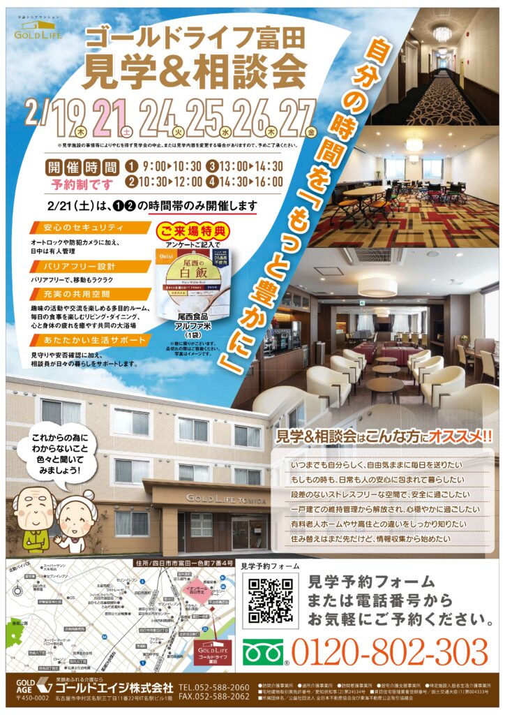 ゴールドライフ富田では、2026年2月度の見学&相談会を開催いたします。