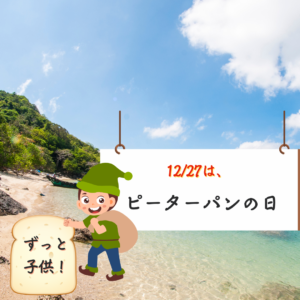 - 2025[Sat]12.2712/27は「ピーターパンの日」。深夜、家中をウロウロする長男と、迷惑そうな妹日々雑感今日は何の日ピーターパンさて、明日12月27日は「ピーターパンの日」だそうです。 1904年の今日、イギリスで童話劇『ピーターパン』が初めて...