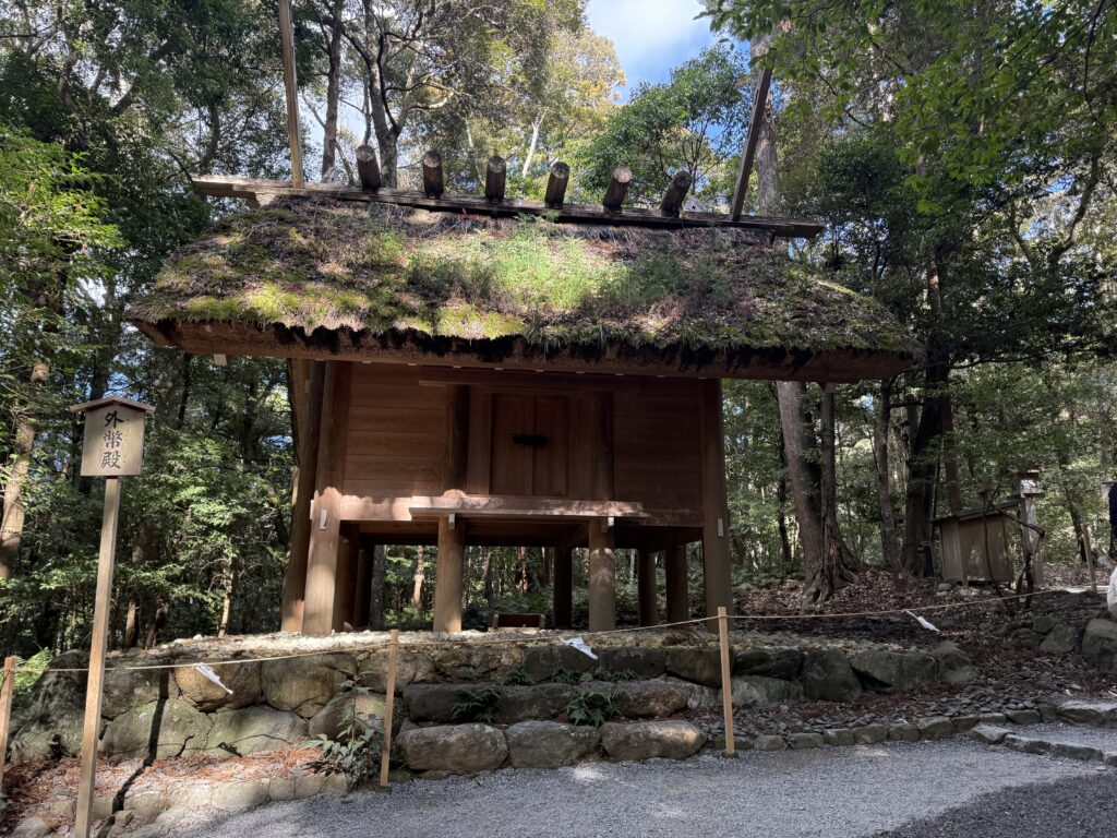 1. 御稲御倉(みしねのみくら) 参道の脇にあるこの建物は、神様の稲を保管する場所です。実はこれ、正宮の5分の1の大きさで作られた、ほぼ正確なミニチュアなのです。板垣がないため、正宮では見えない高床の構造や、茅葺屋根の分厚さ、美しい曲線を間近で観察できます。