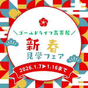 - 2026[Thu]01.01ゴールドライフ高茶屋 2026年1月度 新春見学フェア開催!【予約制】見学お知らせゴールドライフ高茶屋では、2026年1月度の新春見学フェアを開催いたします。 開催日:1/7.8.9.10.15.16 ※1/7(水)、1/...